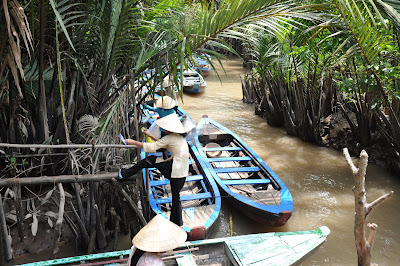 deste filme, que eu um dia sonhei ir ao Delta do Mekong. O rio conserva o mesmo tom pardacento das águas, espraindo-se calmamamente por múltiplos canais. Aconselho vivamente o livro, o filme (o Tony Leung, continua giro e a despertar paixões, por aqui) e, já agora, o passeio no Delta do Mekong.